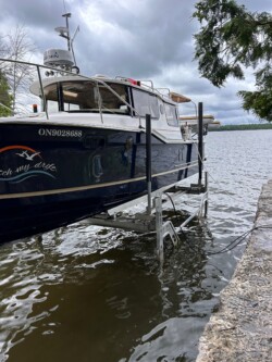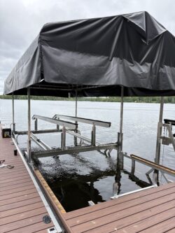 One notable feature is its capacity options, with choices of either 6000 lb. or 10,000 lb. This allows boat owners to select the lift that suits their specific boat size and weight.
