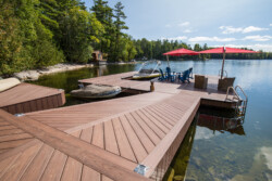 Originally designed for marina application we are now doing a wide variety of layouts using this style of dock for the cottager. Manufactured from 24” steel tubes they are exceptionally stable and work excellent in rough water, or where a large stable dock is required.