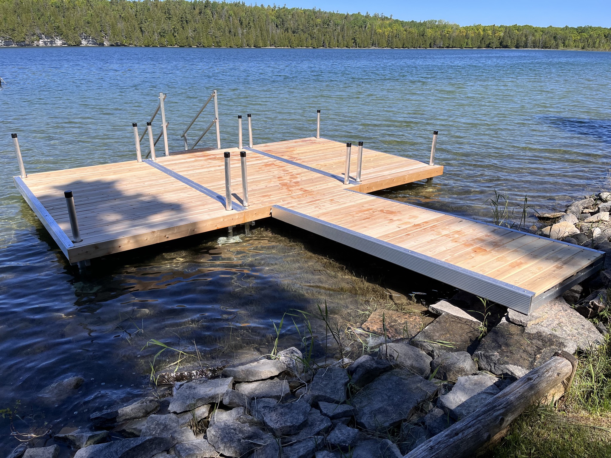 Our WaveX docks are available in frame only configuration or with 2’ removable decking panels. Decking panels are available in 5/4 PT Sienna, Western Red Cedar, Thruflow, and several colours of PVC Decking or optional aluminum decking.