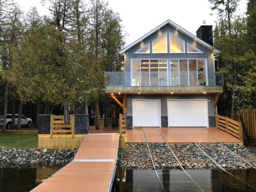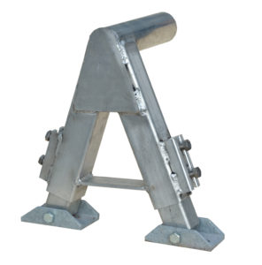 The wheels are flanged steel casters, designed for marine railway use, with grease fittings and brass bearings, supported front and back by twin support beams. Guide hooks keep the carriage from becoming derailed when loading during windy conditions. Your boat can safely come within inches of your dock for easy boarding.