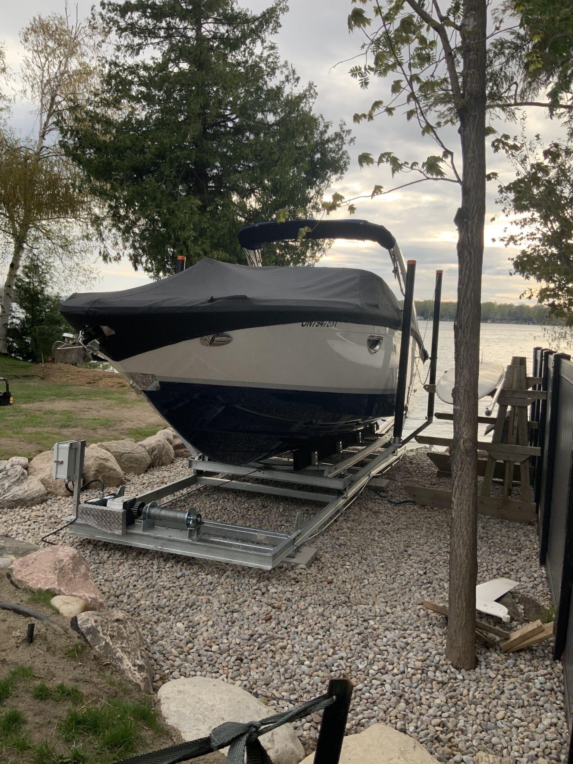 R&J Machine manufactures the ultimate in marine railway systems. Our tracks are designed with two truss rods to prevent warping under heavy loads and are attached with 1″ pins, eliminating rusted nuts and bolts. There are attachment brackets for levellers when required. All of our bunks are full-length to support your boat in the keel area and fully carpeted to prevent scratches. This method of support also allows for easy alignment when entering the carriage.
